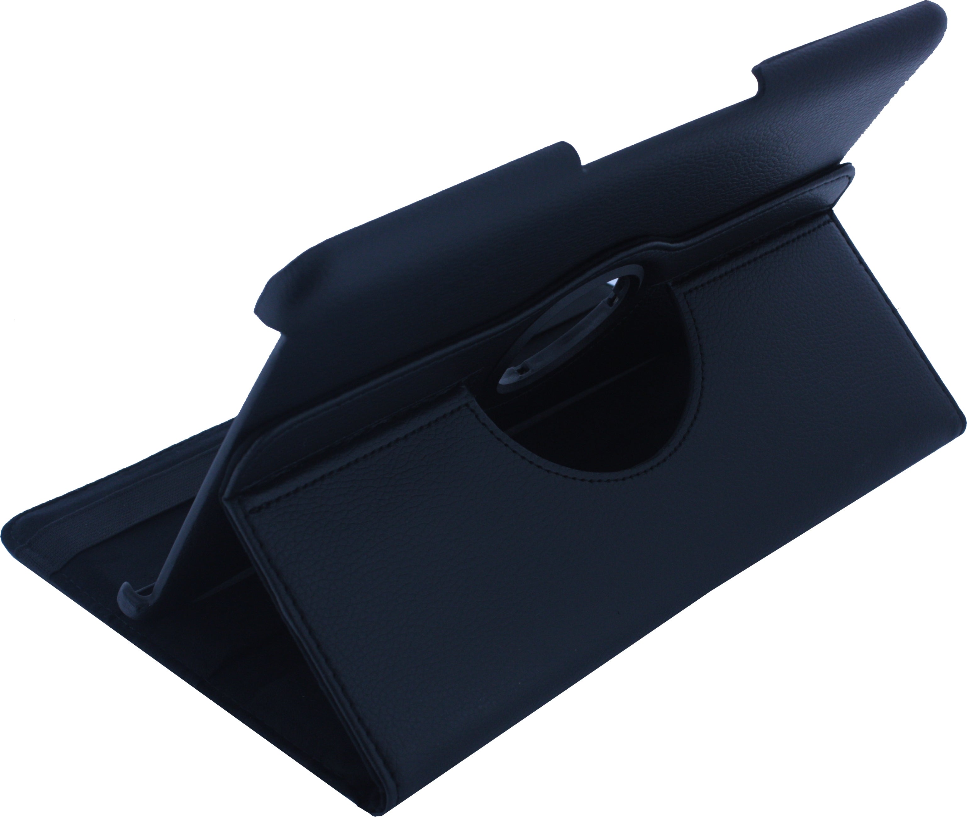 Deze Xccess Rotating Leather Stand Case is gemaakt van PU leder. Aan de rechter binnenkant bevindt zich een hardcover waar u uw tablet gemakkelijk en snel in klikt. Aan de linker binnenkant bevinden zich twee onopvallende gleuven waarmee u de case in gewenste positie kunt plaatsen. Daarnaast is deze linkerkant ook voorzien van een strak elastiek, welke u naar de achterkant kunt halen om de case goed af te sluiten. Zoals de naam al aangeeft is het een rotating case en dat betekend dat hij draaibaar is. U kunt hem in zowel een horizontale- als verticale positie zetten voor optimaal gebruiksgemak!