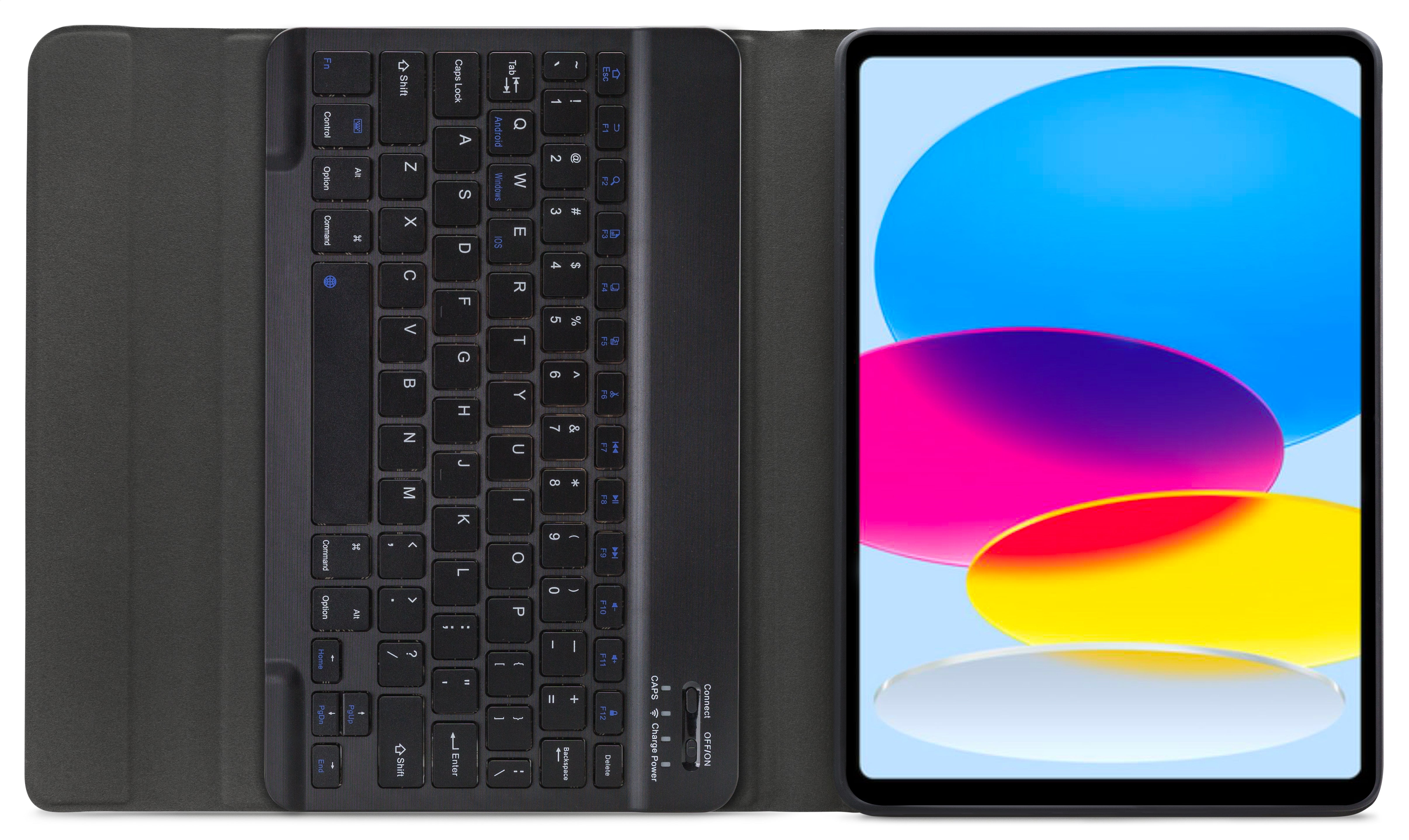 Dankzij gleuven aan de binnenkant van de case is de tablet is in 3 verschillende standen te zetten voor beter zicht op het scherm tijdens het typen van je document of Teams-vergadering. Door middel van Bluetooth maakt u verbinding met het QWERTY-toetsenbord. Het uitneembare toetsenbord is licht van gewicht, heeft een solide bouw zodat het comfortabel typt en zit met sterke magneten stevig vast in de case. Een extra laag microfiber onder het toetsenbord zorgt er ook nog eens voor dat het niet weg zal glijden tijdens gebruik en voor extra stevigheid. In de flap van de case zit ook een sterke magneet die de gehele case netjes afsluit.