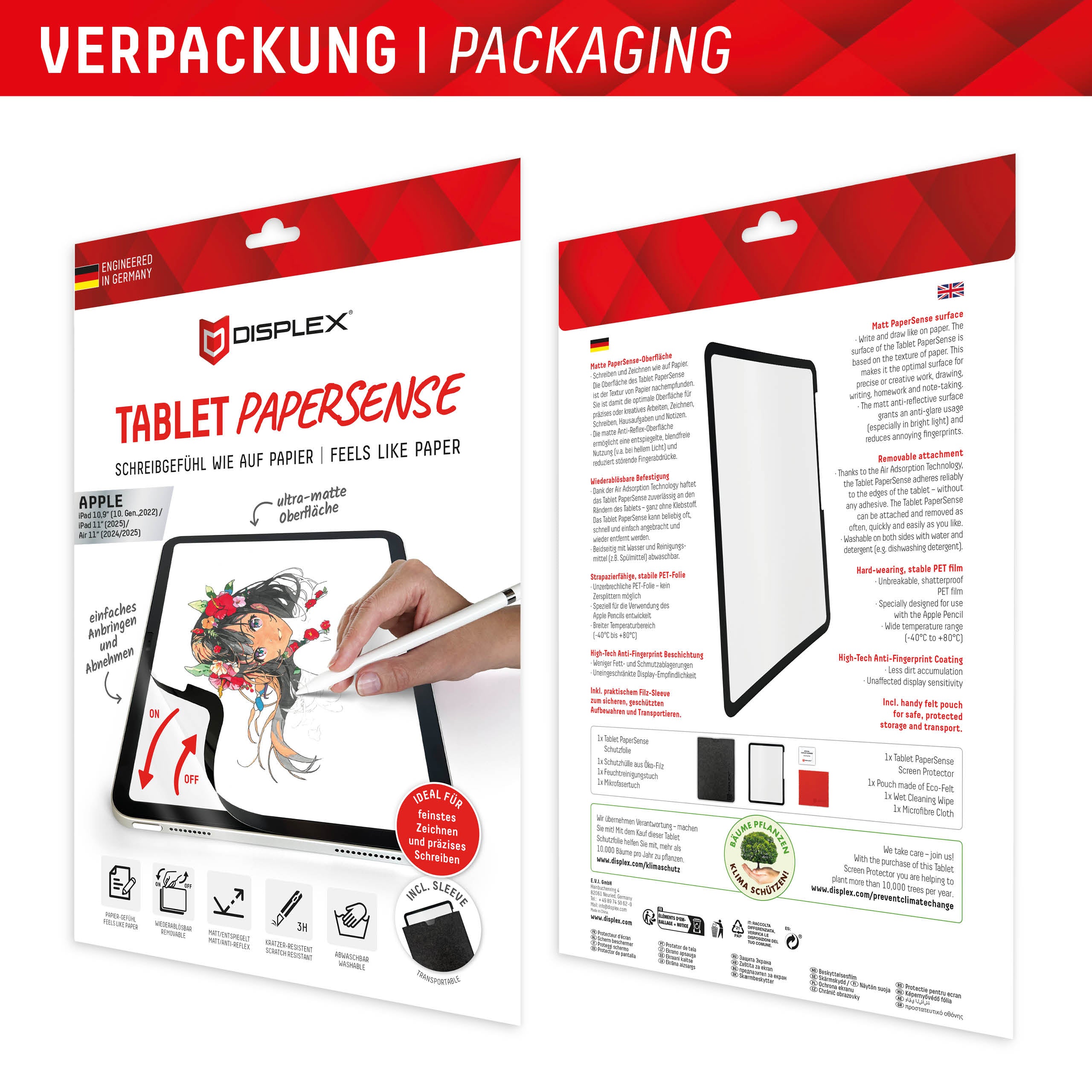 Dankzij de Air Adsorption Technology is de Tablet PaperSense beschermfolie snel en eenvoudig aan te brengen en te verwijderen – volledig zonder lijm.