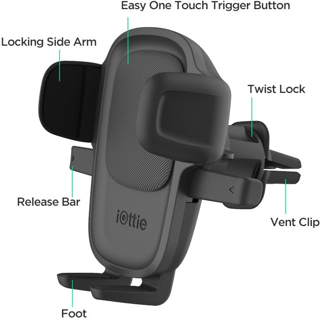 De iOttie Easy One Touch 5 Air Vent Mount klemt jouw smartphone automatisch vast wanneer je het in de houder plaatst! Een knop wordt ingedrukt wanneer het toestel in de houder zit en dat zorgt ervoor dat de armen het toestel stevig vastklemmen.