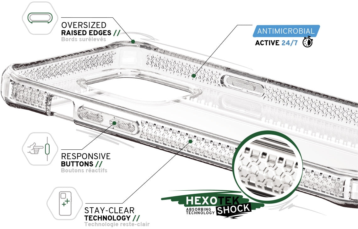 De nieuwe Spectrum Clear_R serie beschermt uw telefoon dankzij de certified drop safe protection tot 3 meter, is gemaakt van 100% gerecycled materiaal en zit in een duurzame verpakking. De case is gemaakt van een dun en flexibel materiaal en biedt een optimale bescherming. De Spectrum Clear bevat Air Pocket technologie waardoor schokken beter worden opgevangen. Dit legt namelijk een buffer tussen uw toestel en de case. Dankzij de opstaande randen en verstevigde hoeken worden zowel uw camera als uw scherm beschermd. De Spectrum Clear heeft na lang en uitgebreid testen dan ook de military grade gekregen. De case is gemaakt van een polycarbonaat materiaal wat niet vergeeld, hierdoor blijft uw case langer mooi.