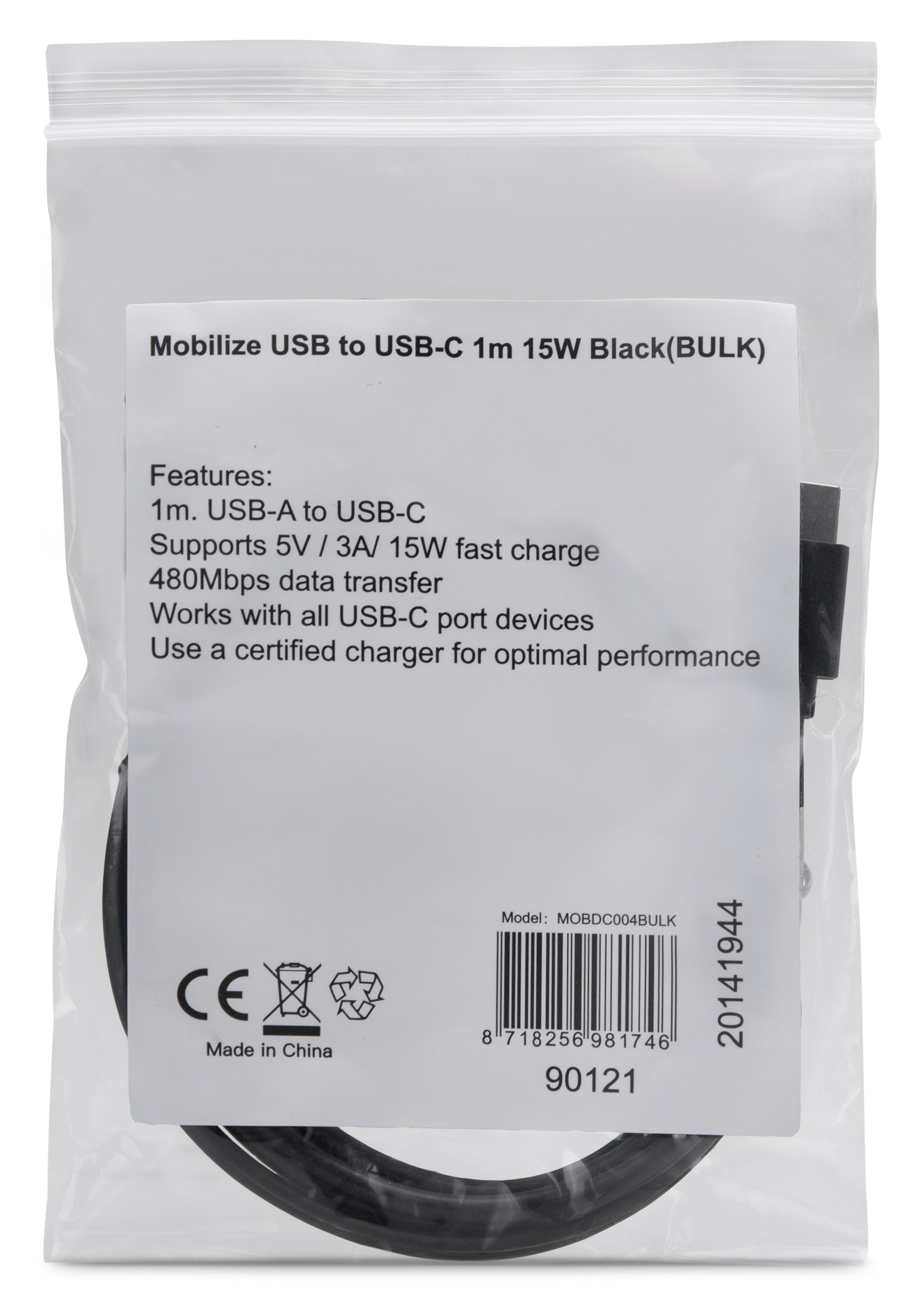 De USB to USB-C kabel van Mobilize is een datakabel en laadkabel in één. De kabel is geschikt voor het opladen en/of synchroniseren van apparaten met een USB-C aansluiting.