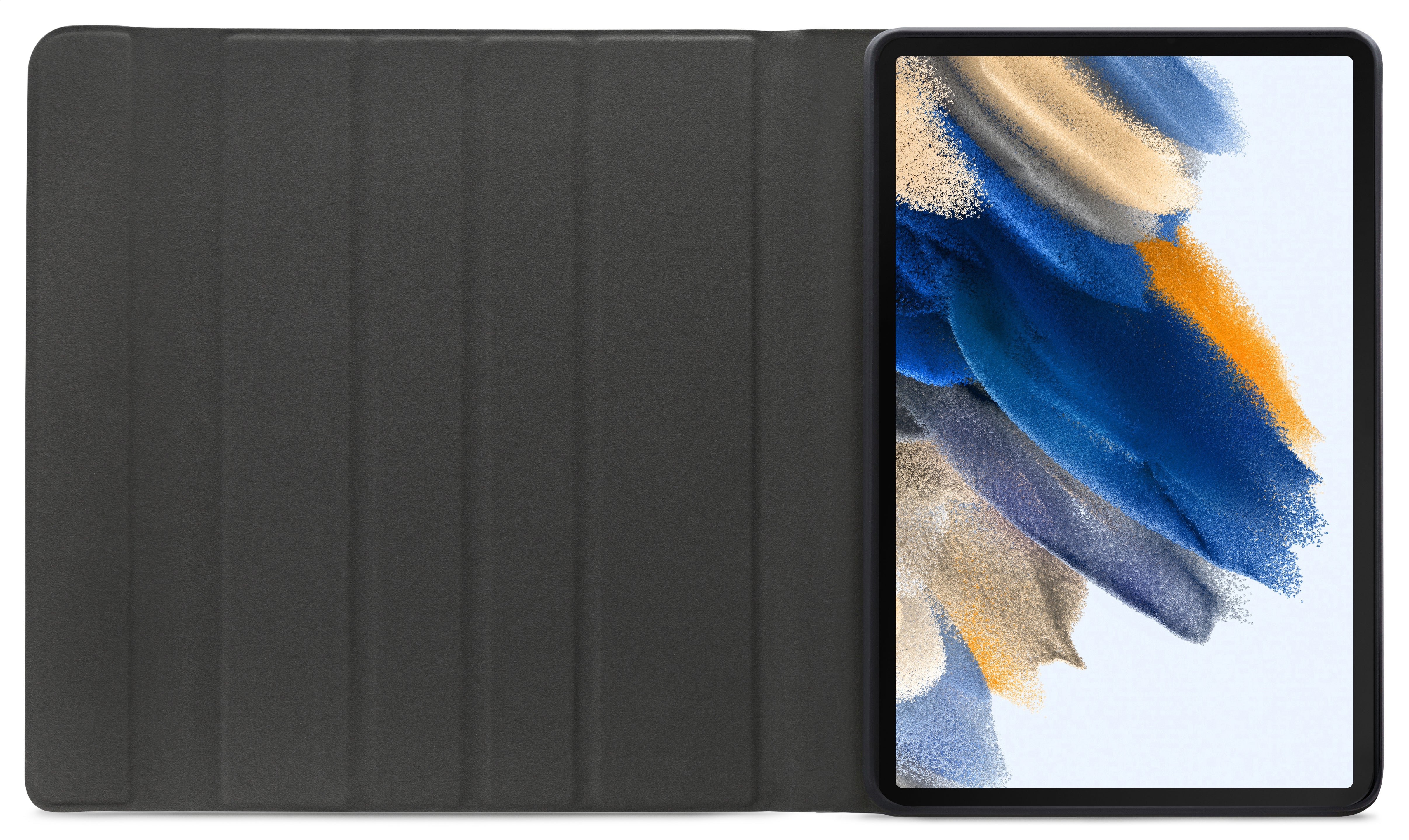 Dankzij gleuven aan de binnenkant van de case is de tablet is in 3 verschillende standen te zetten voor beter zicht op het scherm tijdens het typen van je document of Teams-vergadering. Door middel van Bluetooth maakt u verbinding met het QWERTY-toetsenbord. Het uitneembare toetsenbord is licht van gewicht, heeft een solide bouw zodat het comfortabel typt en zit met sterke magneten stevig vast in de case. Een extra laag microfiber onder het toetsenbord zorgt er ook nog eens voor dat het niet weg zal glijden tijdens gebruik en voor extra stevigheid. In de flap van de case zit ook een sterke magneet die de gehele case netjes afsluit.