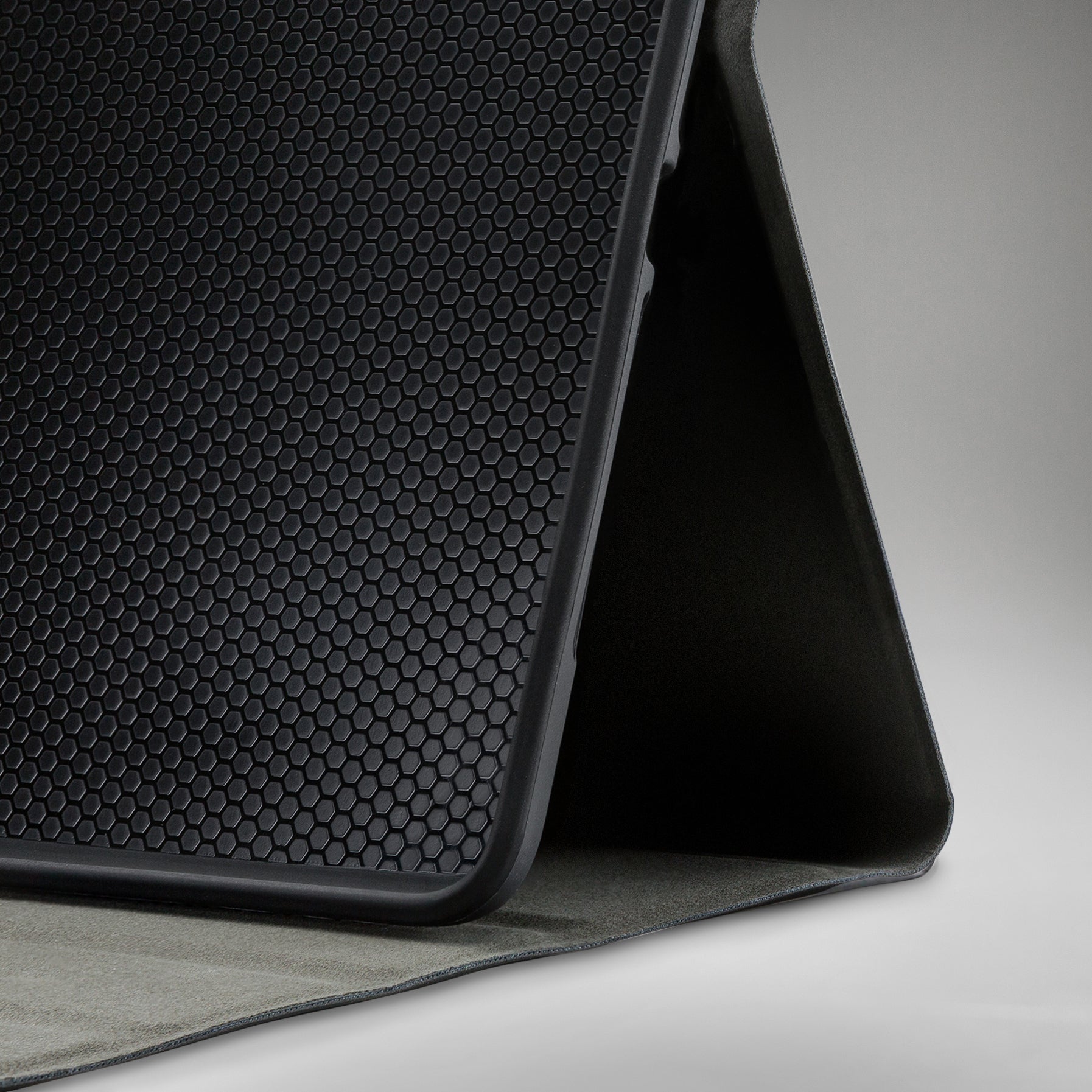 De buitenkant is gemaakt van hoogwaardig soft touch kunstleer en fraai afgewerkt. Het is gemakkelijk om de tablet in de case te bevestigen dankzij de zwarte TPU-case die rondom de gehele tablet loopt. De voordelen van een TPU-case ten opzichte van een polycarbonaat hardcover is dat de TPU-case niet kan breken, altijd mooi blijft en door de zwarte kleur niet zal verkleuren. Uiteraard is er rekening gehouden met de belangrijke uitsparingen waardoor de case het gebruik van de tablet niet belemmerd.