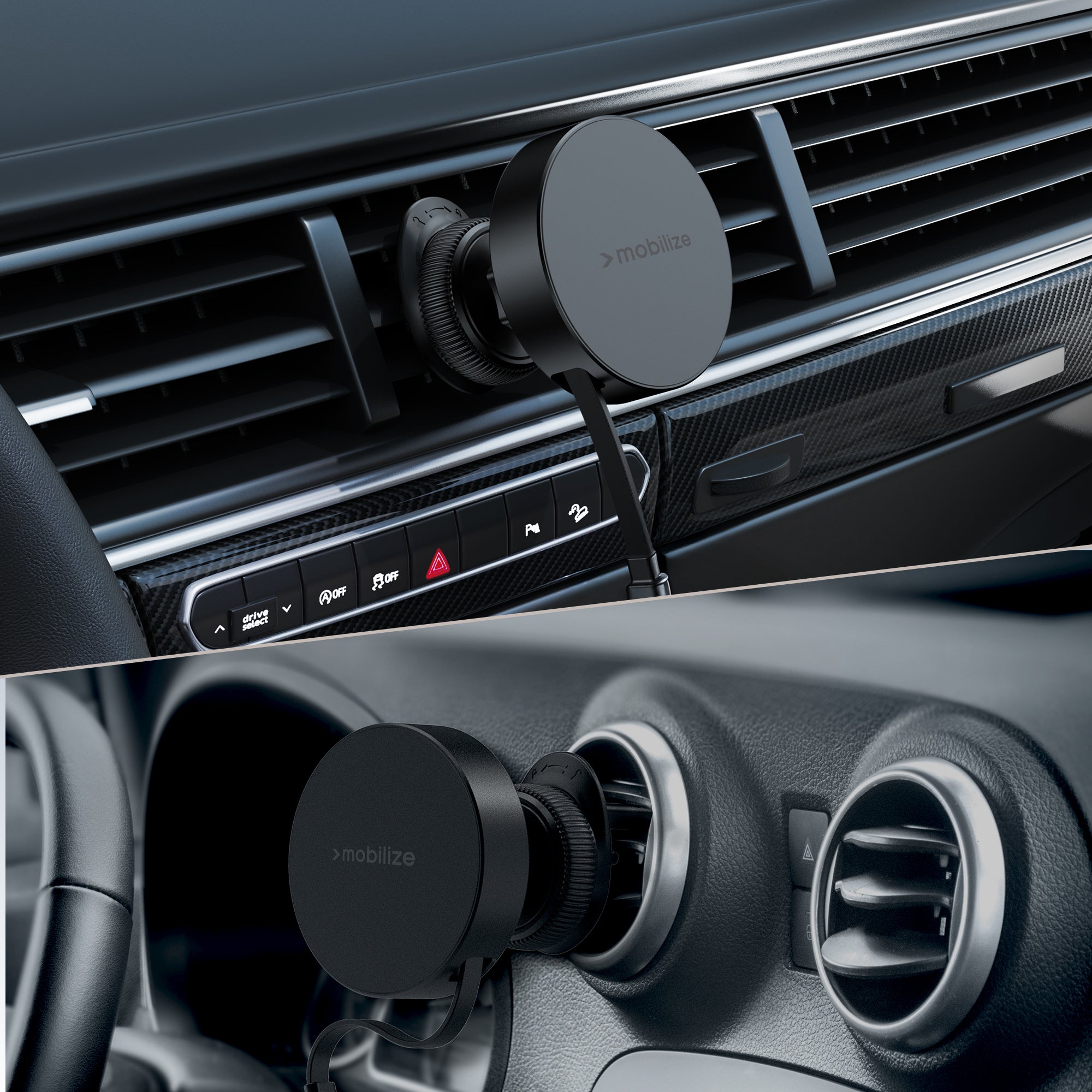De Mobilize MagSafe Compatible Car Holder/Charger combineert naadloos gemak, stijl en functionaliteit voor een optimale rijervaring. Met de geïntegreerde magnetische draadloze lader is je smartphone altijd stevig bevestigd en direct opgeladen, zonder gedoe met kabels.