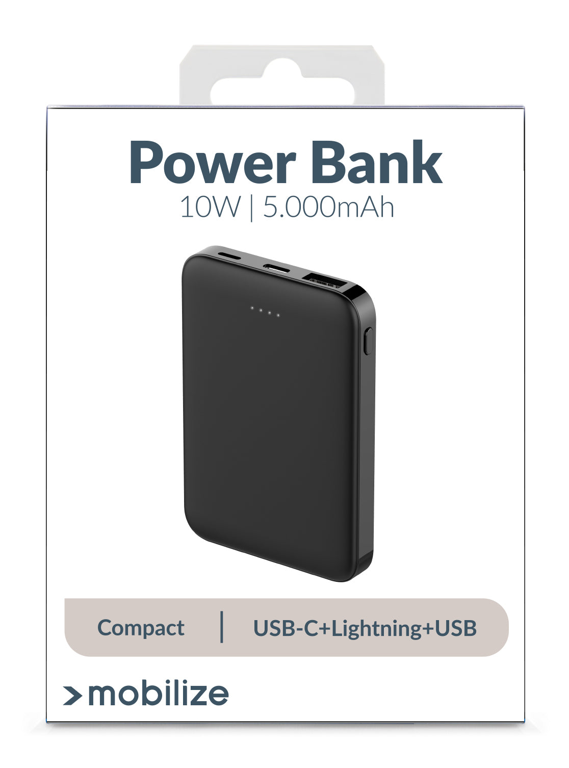 Maak kennis met de Mobilize Power Bank 5000mAh in stijlvol zwart. Deze krachtige en compacte energiecentrale is jouw perfecte reisgezel wanneer je apparaten wat extra energie nodig hebben.
