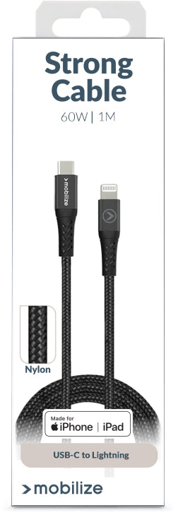 Mobilize Strong Nylon Cable Usb To Apple Mfi Lightning 2M. 12W Black