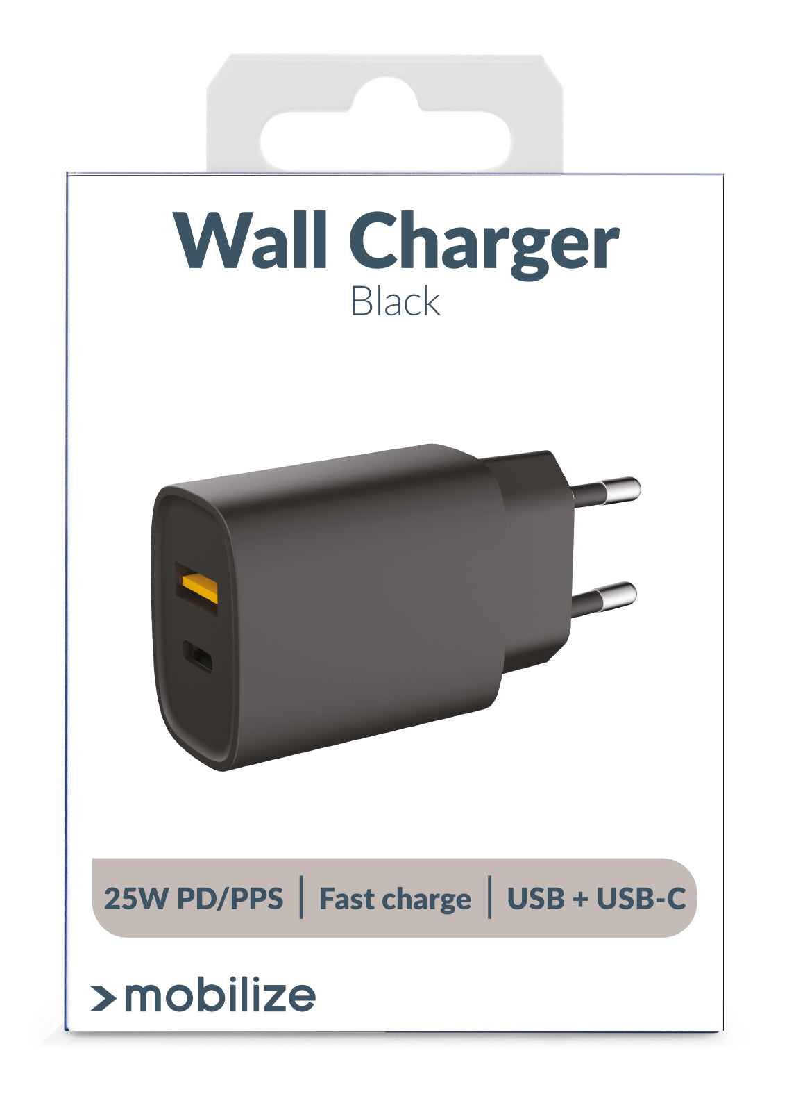 Mobilize Wall Charger Usb-C + Usb 25W With Pd/Pps Black