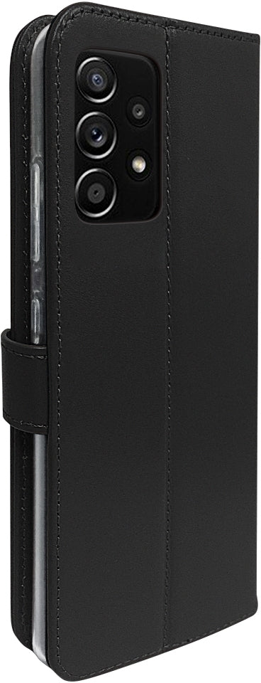 Deze zwart leren Book Case voor de Samsung Galaxy A72/A72 5G is de ideale combinatie van een stijlvolle telefoonhoes en een portemonnee. Dit telefoonhoesje is handgemaakt om een perfecte pasvorm en optimale bescherming te garanderen en tevens de levensduur van je Samsung Galaxy A72/A72 5G te verlengen.