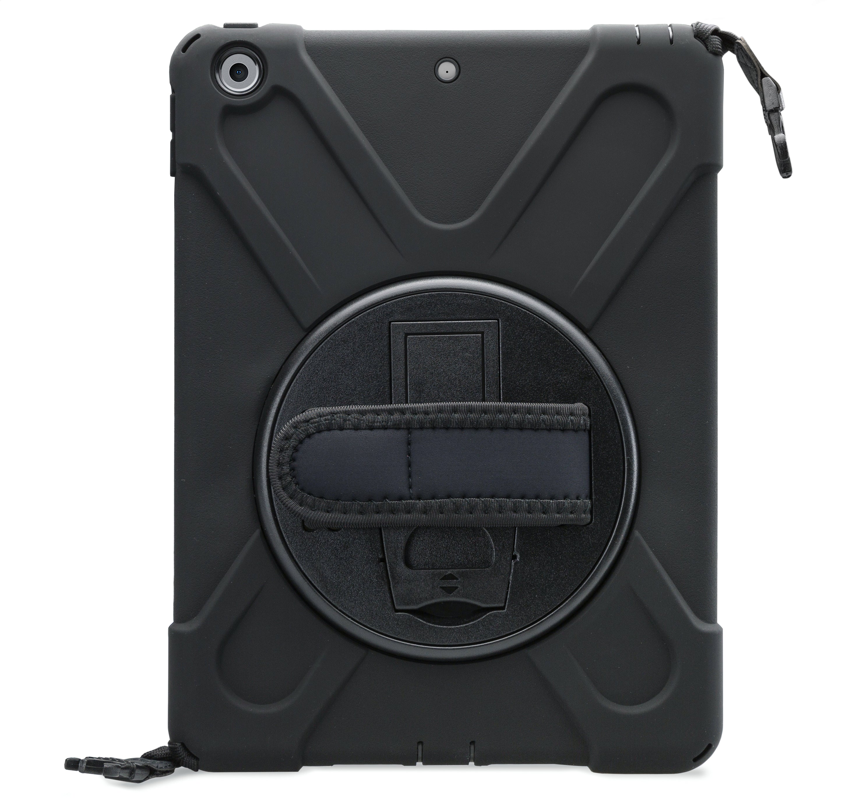 Met de Xccess Survivor All-round Case bent u van alle gemakken voorzien. De case is gemaakt uit een basis van hard plastic, met een rubberen afwerking. Zo vangt de case eventuele klappen en stoten op als de tablet per ongeluk valt. Gelukkig zal dit niet snel gebeuren, dankzij de Hand Strap op de achterzijde. Deze strap zorgt ervoor dat u de tablet goed vast kunt houden. Middels het klittenband is de strap goed strak te trekken om elke hand. Deze strap bevindt zich op een 360° draaibare schijf, zodat u de tablet in zowel landscape als portrait stand wilt gebruiken. Daarnaast kunt u de tablet als schoudertas dragen dankzij het bijgeleverde koord. Achter de Hand Strap is bovendien nog een handige standaard te vinden, zodat u comfortabel naar video's kunt kijken.